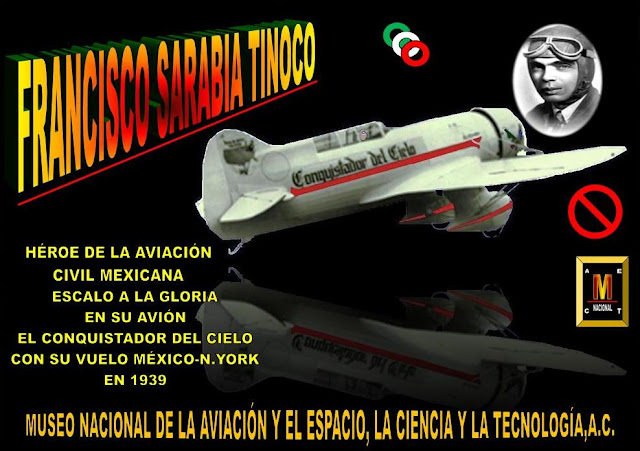 Mostramos ilustración realizada por nosotros, relativa al Vuelo México-Nueva York realizada por nuestro Aguilucho Lagunero el CAPITÁN PILOTO AVIADOR FRANCISCO SARABIA TINOCO en 1939.